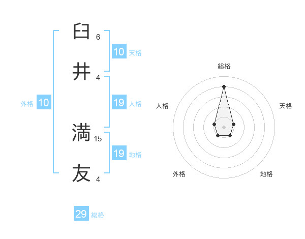 臼井 満友さんの総格は29画の4点!