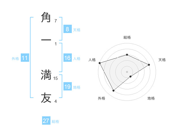 角一 満友さんの天格は8画の4点!