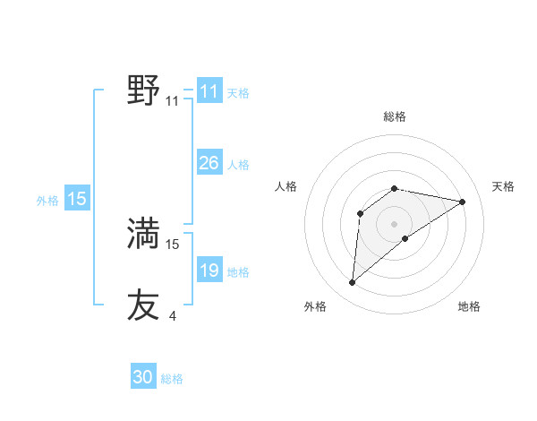 野 満友さんの総格は30画の2点!