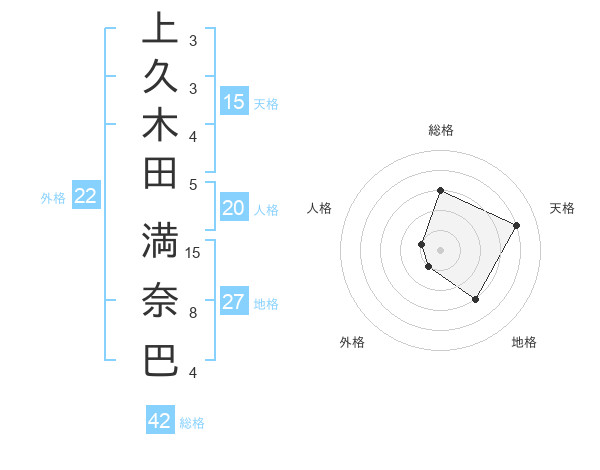 上久木田 満奈巴さんを姓名の画数から五運を鑑定