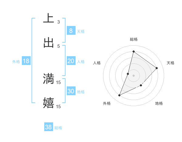 上出 満嬉さんを姓名の画数から五運を鑑定