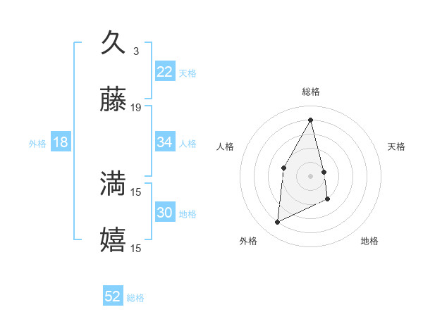 久藤 満嬉さんを姓名の画数から五運を鑑定