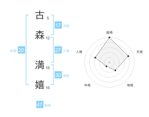 古森 満嬉さんの総格は47画の5点!