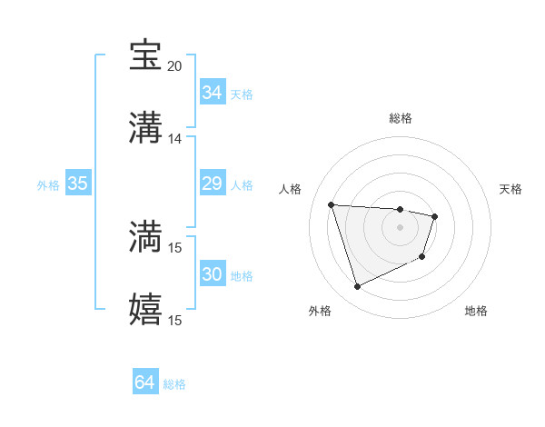 宝溝 満嬉さんを姓名の画数から五運を鑑定