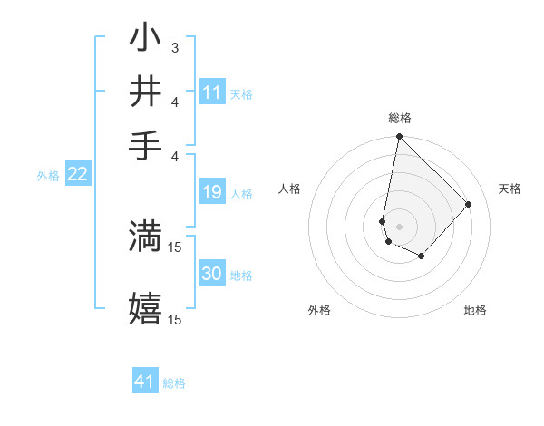 小井手 満嬉さんを姓名の画数から五運を鑑定