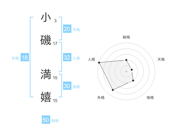 小磯 満嬉さんの総格は50画の2点!