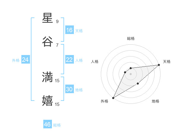 星谷 満嬉さんを姓名の画数から五運を鑑定