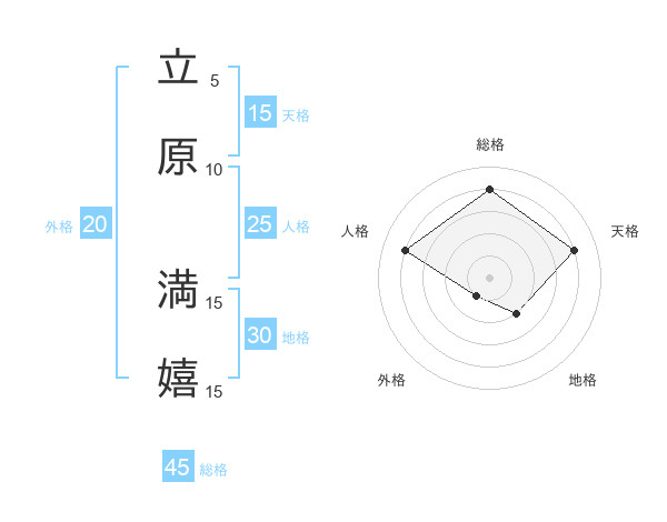 立原 満嬉さんを姓名の画数から五運を鑑定