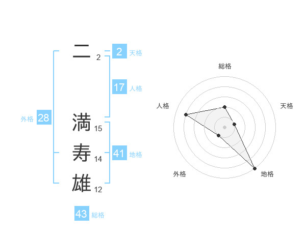 二 満寿雄さんを姓名の画数から五運を鑑定
