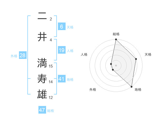 二井 満寿雄さんを姓名の画数から五運を鑑定
