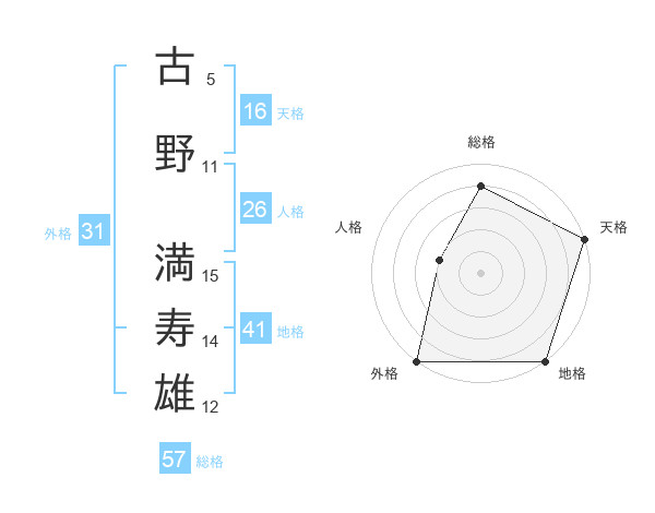 古野 満寿雄さんを姓名の画数から五運を鑑定