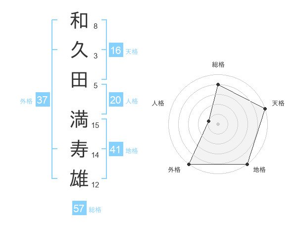 和久田 満寿雄さんを姓名の画数から五運を鑑定