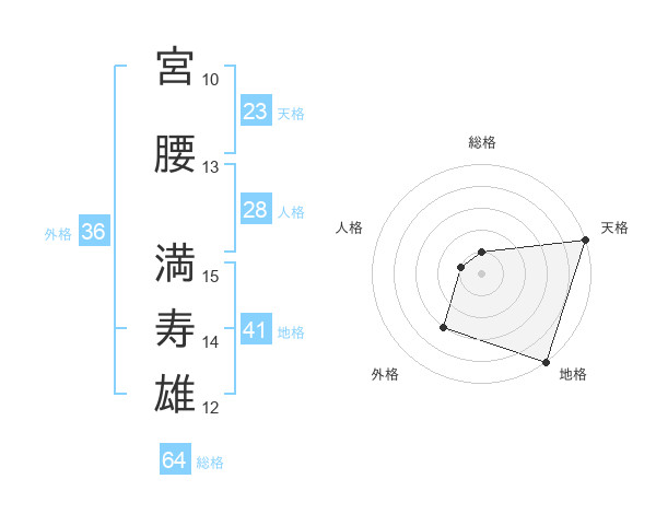 宮腰 満寿雄さんの地格は41画の5点!