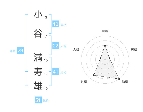 小谷 満寿雄さんの総格は51画の3点!