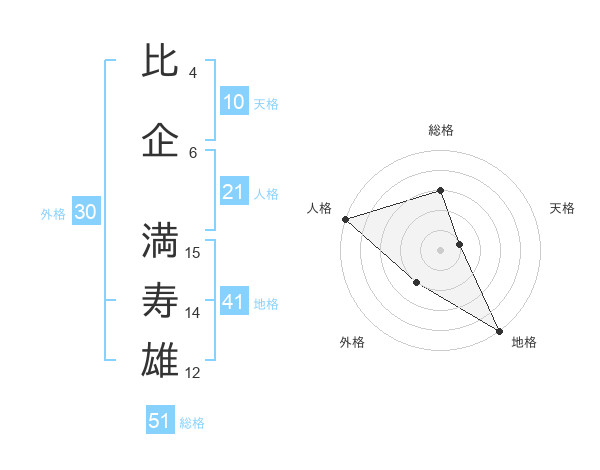 比企 満寿雄さんを姓名の画数から五運を鑑定