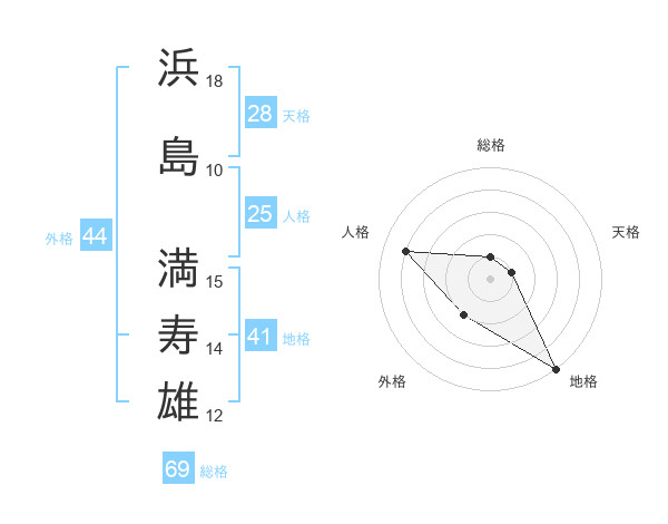浜島 満寿雄さんを姓名の画数から五運を鑑定
