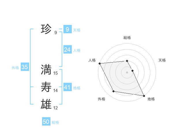 珍 満寿雄さんの総格は50画の2点!