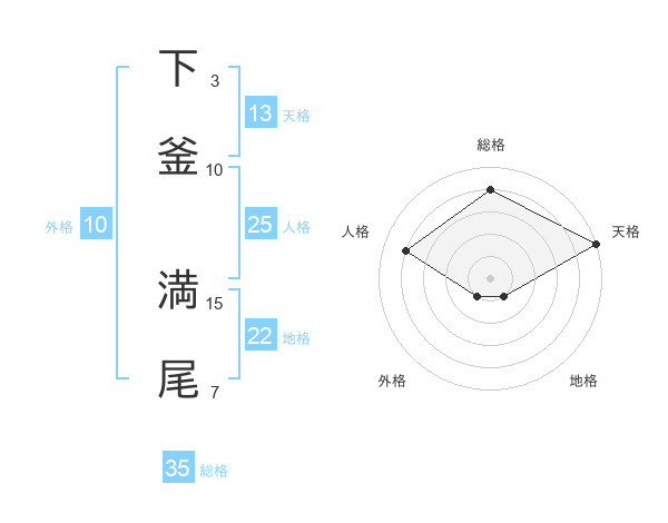 下釜 満尾さんの総格は35画の4点!