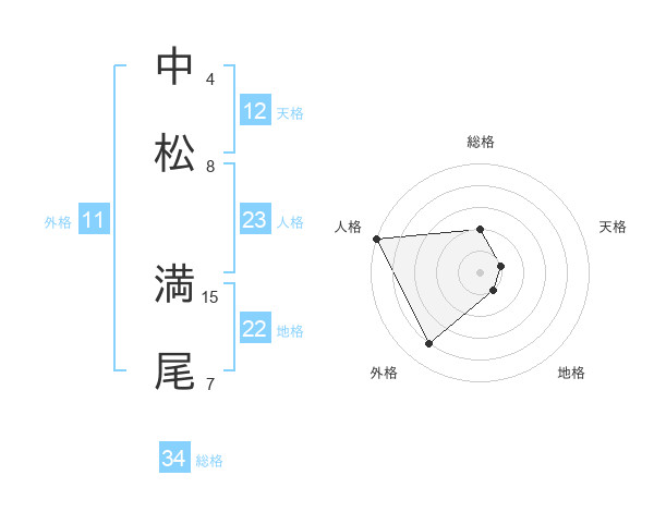 中松 満尾さんの総格は34画の2点!