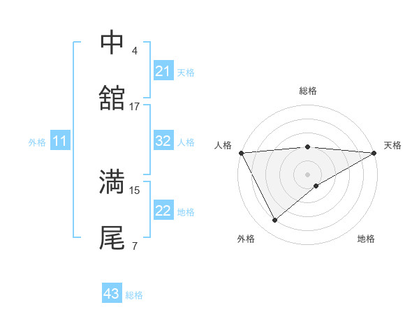 中舘 満尾さんの天格は21画の5点!