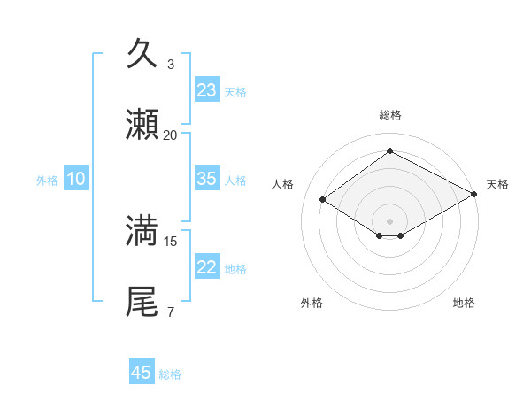 久瀬 満尾さんの総格は45画の4点!