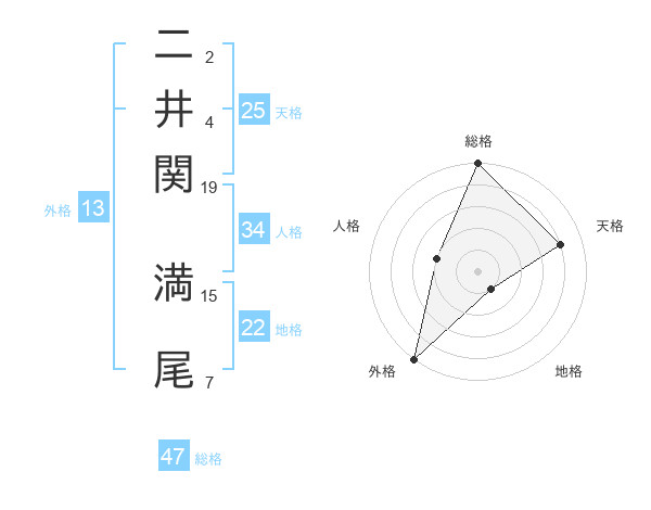 二井関 満尾さんの総格は47画の5点!