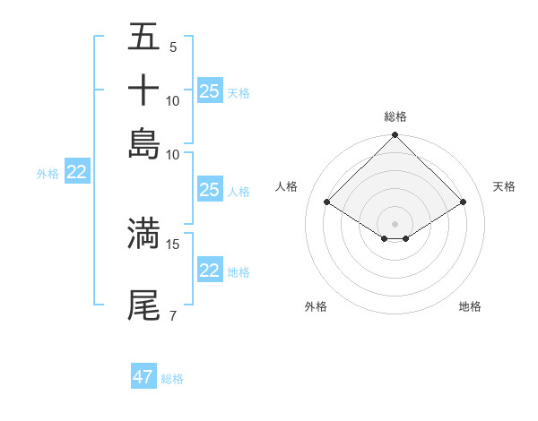 五十島 満尾さんの総格は47画の5点!