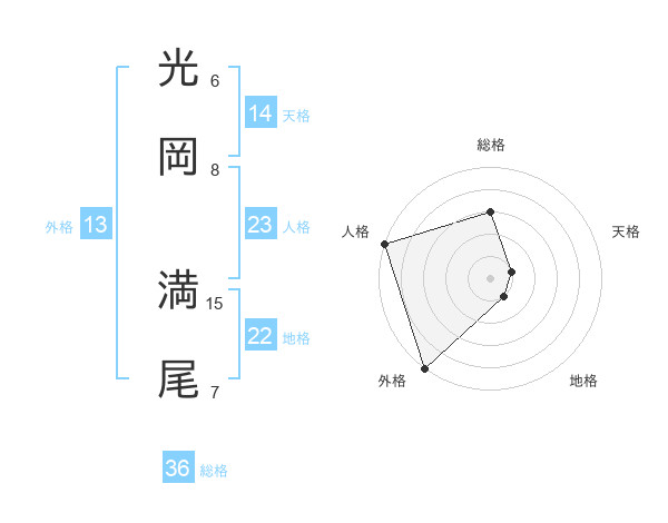 光岡 満尾さんの地格は22画の1点!