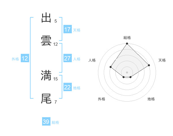 出雲 満尾さんを姓名の画数から五運を鑑定
