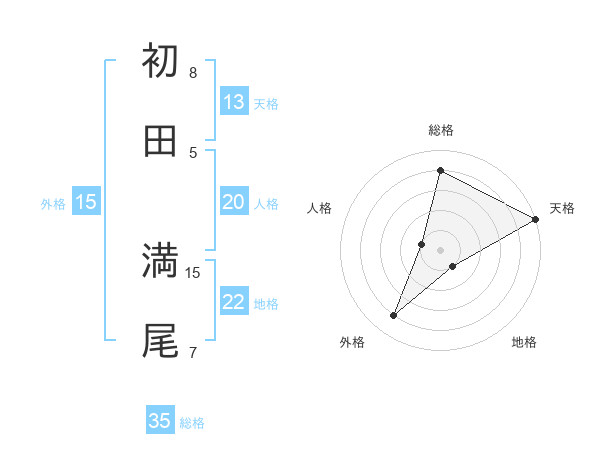 初田 満尾さんの総格は35画の4点!