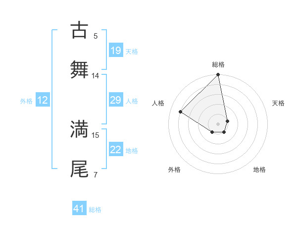 古舞 満尾さんの総格は41画の5点!