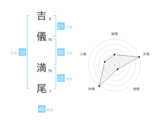 吉儀 満尾さんの総格は43画の2点!