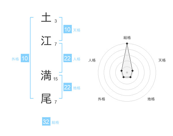 土江 満尾さんの総格は32画の5点!