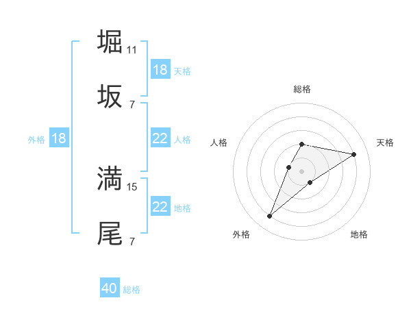 堀坂 満尾さんの地格は22画の1点!