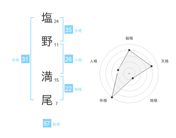 塩野 満尾さんを姓名の画数から五運を鑑定
