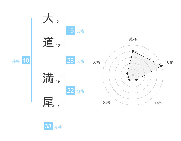 大道 満尾さんの総格は38画の4点!
