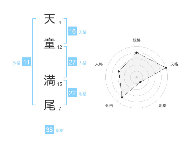天童 満尾さんの総格は38画の4点!