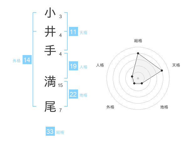 小井手 満尾さんを姓名の画数から五運を鑑定