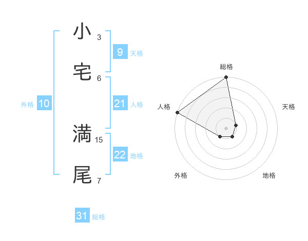 小宅 満尾さんの総格は31画の5点!
