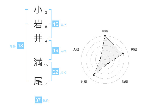 小岩井 満尾さんの総格は37画の5点!