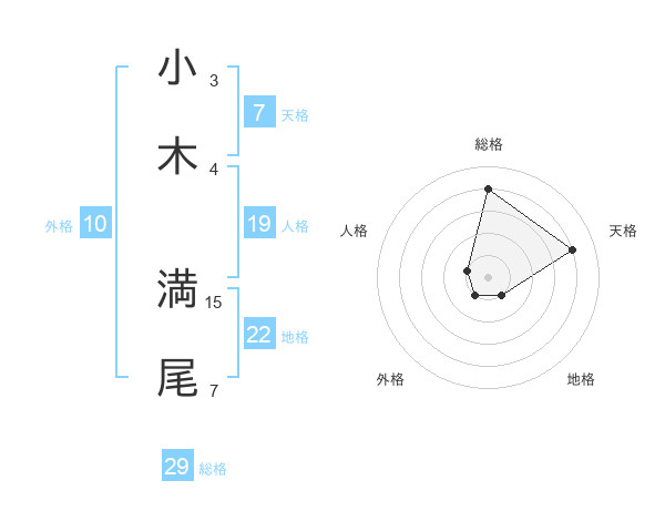 小木 満尾さんの総格は29画の4点!