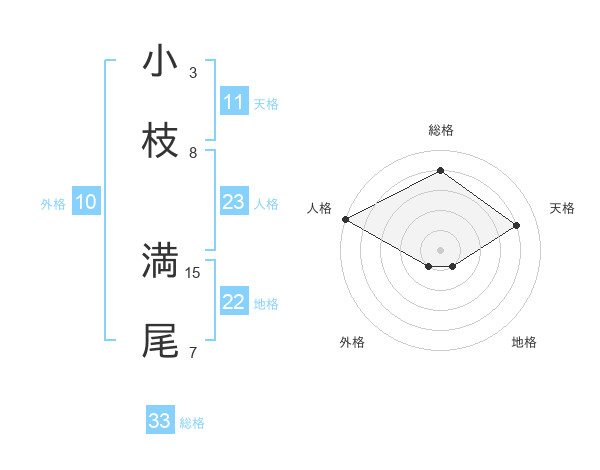 小枝 満尾さんを姓名の画数から五運を鑑定