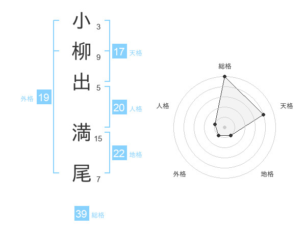 小柳出 満尾さんを姓名の画数から五運を鑑定