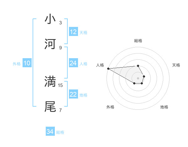 小河 満尾さんの総格は34画の2点!