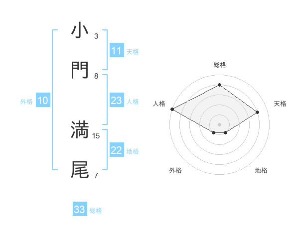 小門 満尾さんの総格は33画の4点!