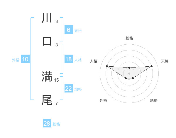 川口 満尾さんの総格は28画の1点!