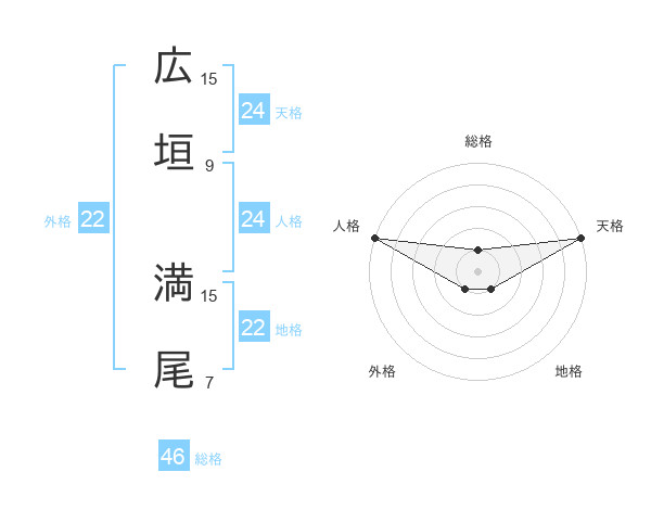 広垣 満尾さんの総格は46画の1点!