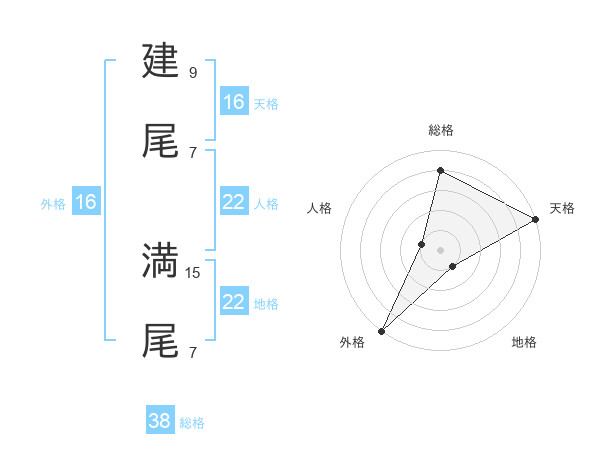 建尾 満尾さんの総格は38画の4点!
