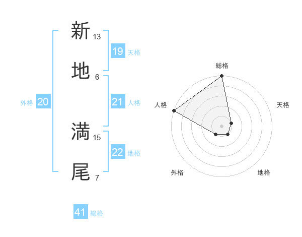 新地 満尾さんの総格は41画の5点!
