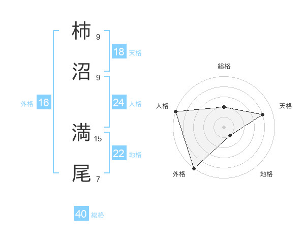 柿沼 満尾さんの地格は22画の1点!